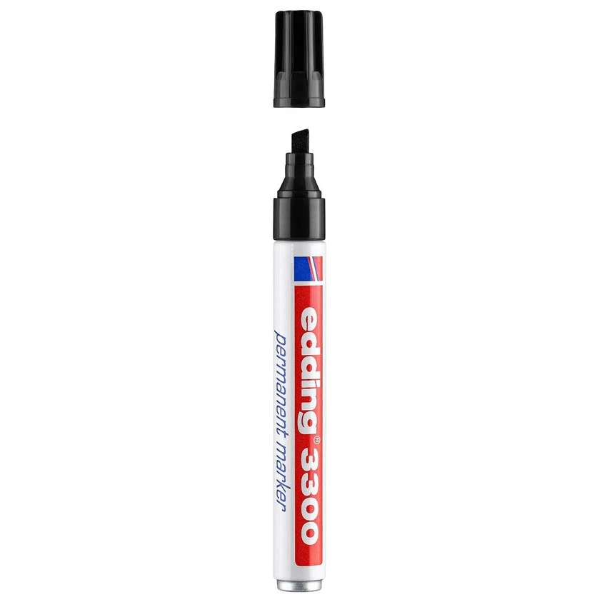 Marcador permanente. El grosor de trazo de la punta biselada es de 1-5 mm. Rellenable